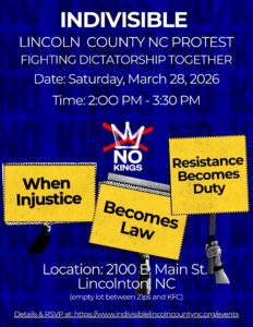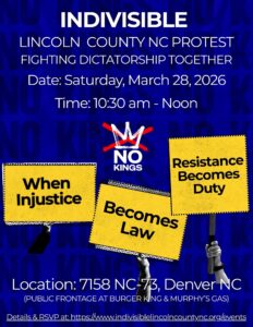 There will be 2 Protests on this day, Saturday March 28th. One in Denver and One in Lincolnton. Please sign up! It is important that Indivisible knows approximately how many people will show up!