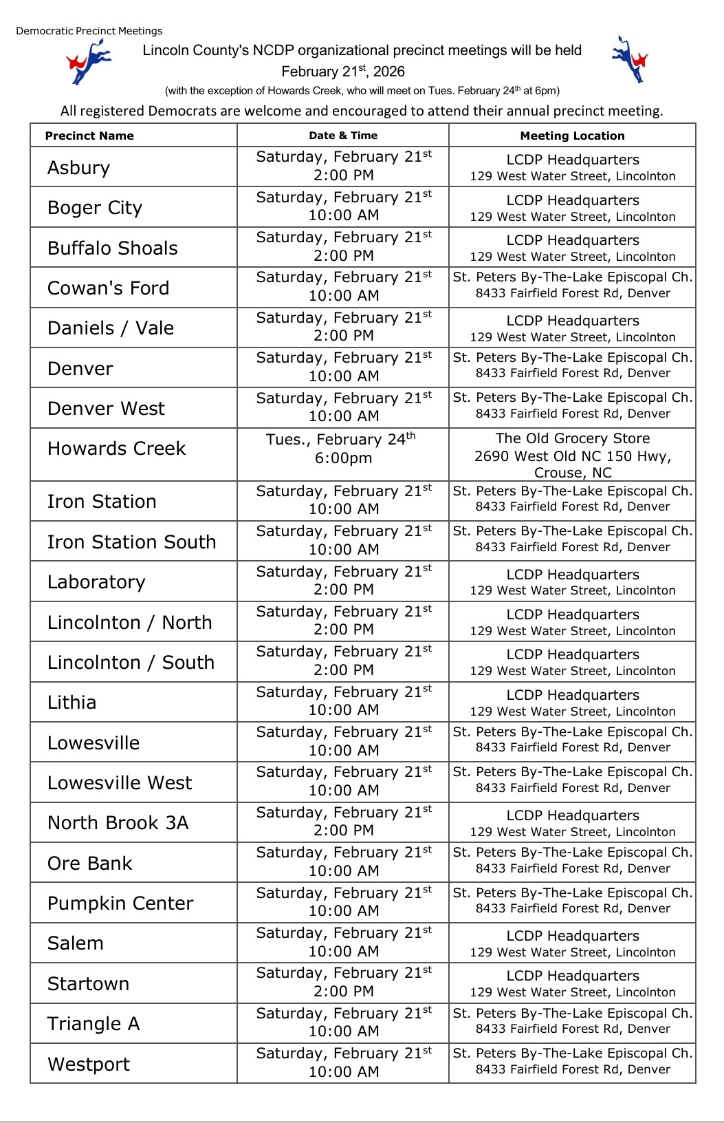 Lincoln County, NC Democratic Party